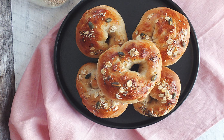 Les bagels se conservent jusqu’au lendemain à température ambiante, ou 3 à 4 jours au réfrigérateur. Se congèlent jusqu’à 3 mois.